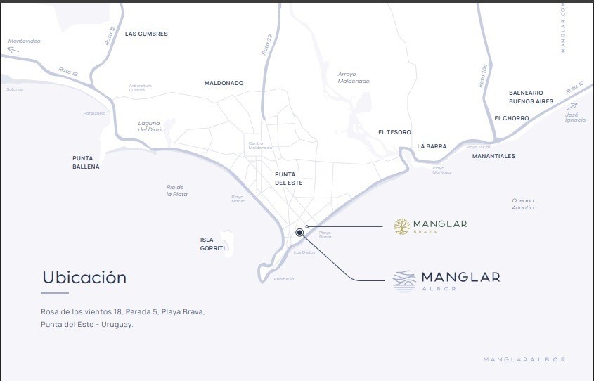 Venta de Departamento 2 Dormitorios – Manglar Albor, Punta del Este Exclusivo departamento de 2 dormitorios y 2 baños, con amplio living comedor, cocina semi integrada con barra, lavadero, parrillero propio, terraza de 31 m² y balcones que suman 15 m² adicionales. Diseñado con materiales de alta gama, excelente distribución y detalles que garantizan confort todo el año. Ubicado en Manglar Albor, el nuevo desarrollo premium de Grupo Fonte, a solo 20 metros de la Rambla en Parada 5 ½, entre Playa Brava y Playa Mansa. Sobre el proyecto Manglar Albor es la evolución natural del exitoso Manglar Brava. Combina diseño contemporáneo, terminaciones de primera calidad y amenities de alto nivel, con una propuesta única en Punta del Este. Amenities destacados Piscina exterior con solárium y pool bar Piscina interior climatizada con sauna y jacuzzi Gimnasio, cowork, playroom para niños y adolescentes 6 salones multiuso, cancha multiuso Rooftop panorámico en piso 24 Servicio de mucama y playa opcionales Beneficios por compra en pozo Precio preferencial Sin comisión para el comprador Exoneración del 3,5% de alojamiento Planes de pago flexibles Una oportunidad única para vivir, vacacionar o invertir en una de las zonas más exclusivas de Punta del Este. / “Las medidas, porcentuales, superficies y designaciones fueron proporcionadas por el propietario, las definitivas de cada planta son las que resultan del título de propiedad y del plano municipal. El precio puede estar sujeto a modificaciones. En cumplimiento con la normativa vigente, los asistentes no ejercen el corretaje inmobiliario. La intermediación y conclusión de las operaciones inmobiliarias es desarrollada por Martilleros y Corredores Públicos. Martilleros responsables : Martín Aguero, CMCPSI 6962 Diego Pollitzer , CUCICBA 9513